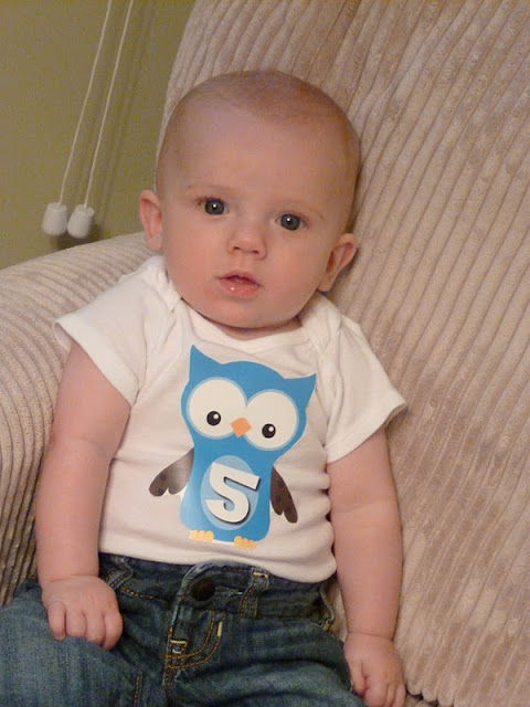 He is wearing size 3-6 months in clothes and a size 2 diaper.